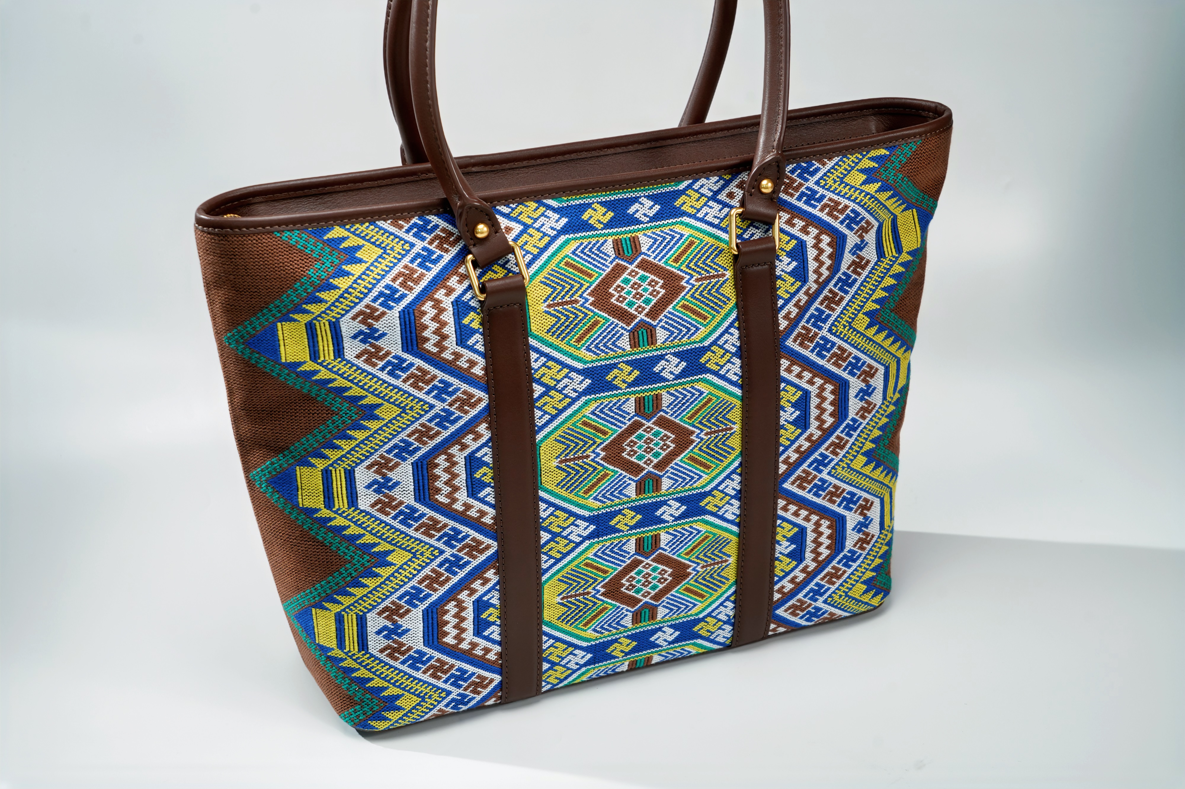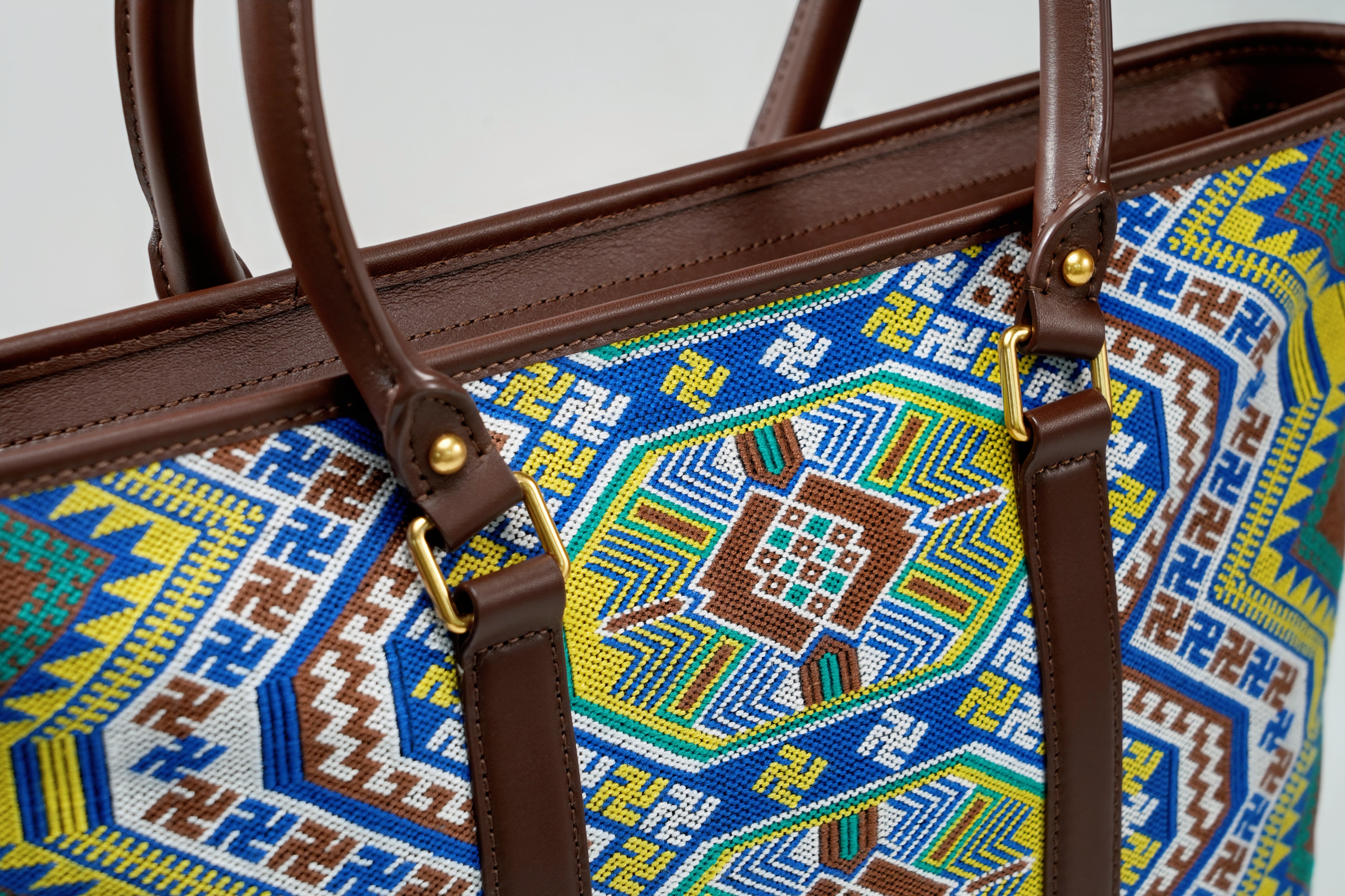 Xilankapu Tujia Brocade Tote Bag – Crab Flower Pattern